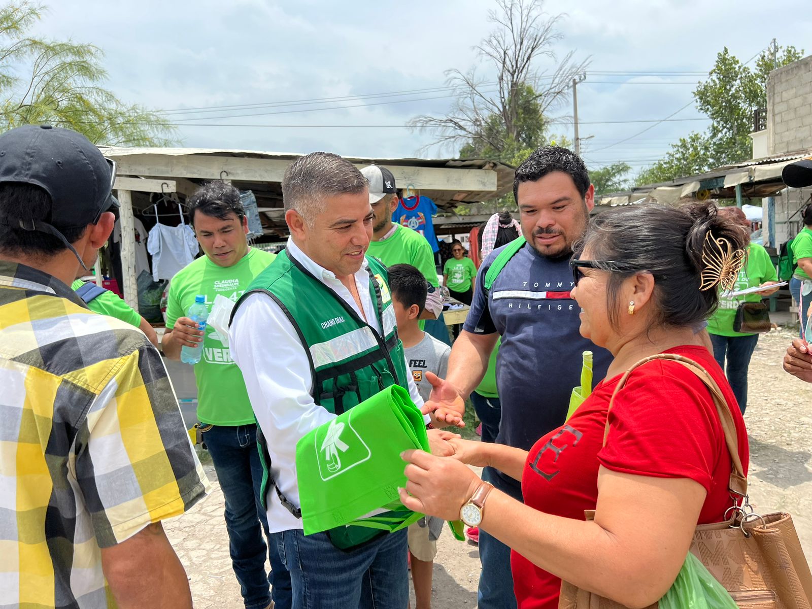 En su camino, el candidato del Partido Verde a la alcaldía fue abordado por decenas de ciudadanos que lo saludaban y le pedían una camiseta, para “ponerse la verde”.