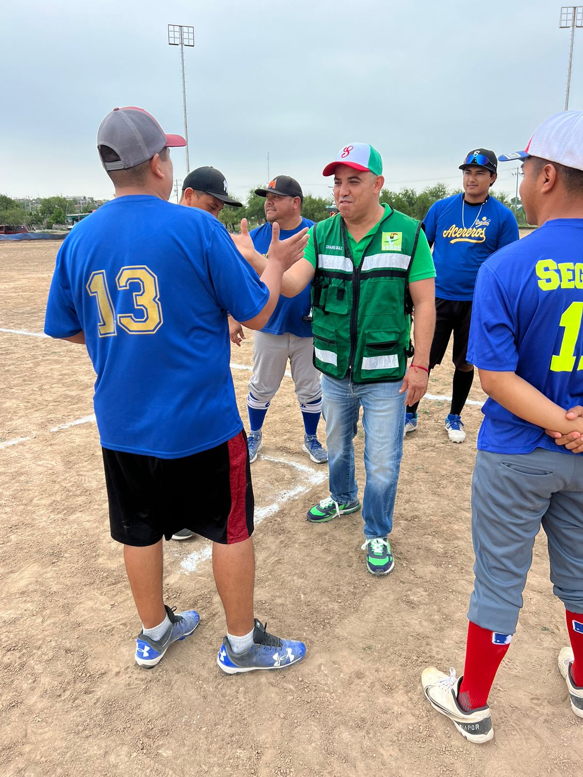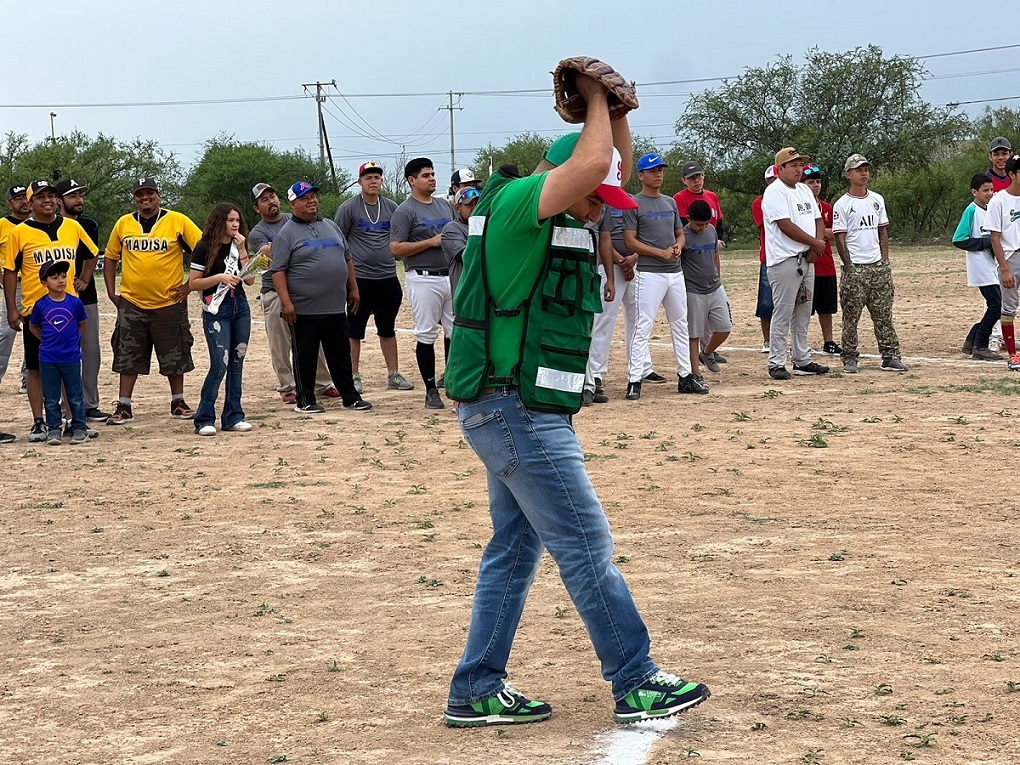 En reconocimiento a su trayectoria como promotor y deportista, “Chano” Díaz, candidato a la alcaldía por el Partido Verde Ecologista, lanzó este sábado la primera bola en la inauguración de la Liga de Softbol Varonil de Agujita.