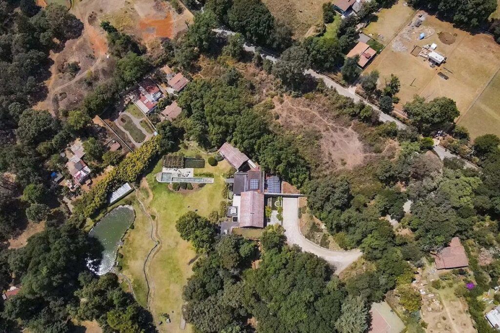 El rancho de Carlos Loret de Mola en Valle de Bravo tiene construido un chalet de 2 niveles de alrededor de 780 metros cuadrados, canchas de tenis y fútbol, albercas, huerto, invernaderos, bosque y hasta un lago artificial.