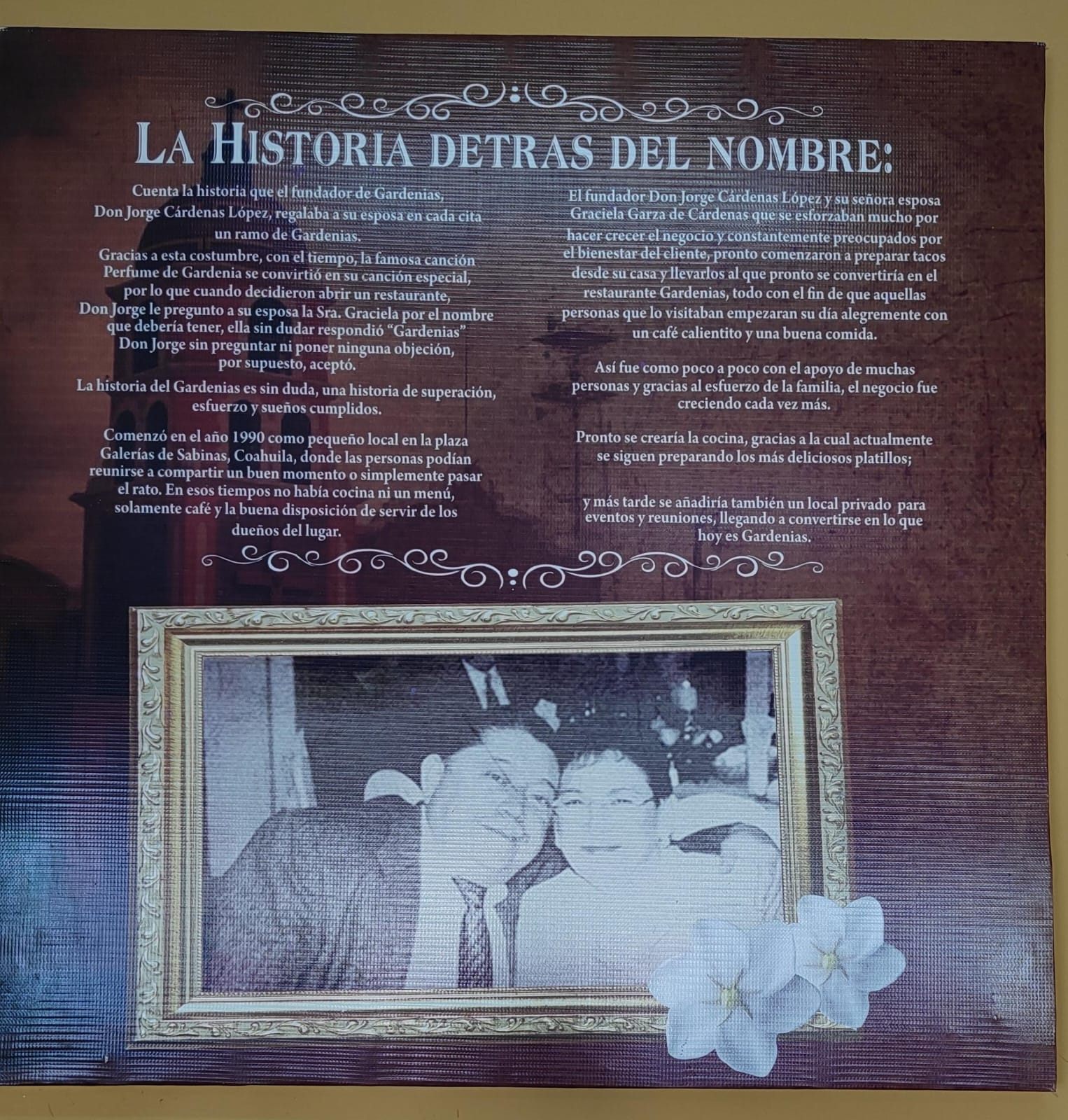 Algo que no podemos pasar por alto, es su historia, del Restaurante-Cafetería Gardenias, fue establecido en el centro de la ciudad en la calle Independencia entre Madero y Zaragoza y han logrado sostener a sus clientes a pesar de los momentos adversos que se han vivido debido a la pandemia por el Covid-19.