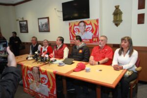 Acompañado por el diputado Benjamín Robles, y los candidatos a diputados locales en los distritos 13, 14, 15 y 16, Yolanda Palacios, Josefina Flores, Francisco Gaytán y Alejandro Campos.