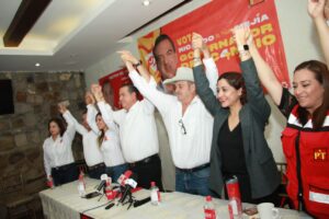 Para hacer realidad el proyecto transformador, “El Tigre” Mejía Berdeja, invitó a los ciudadanos a respaldar mediante su voto al candidato Alejandro Campos García, y los aspirantes a una diputación por el Partido del Trabajo (PT)