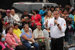 También, tuvo encuentros directos con la ciudadanía en el mercadito Juan Larios, conocido como de la Lechería, en la colonia Hipódromo, donde escuchó el sentir de la gente que busca un cambio en la entidad y justicia ante el abandono que vive la región Centro.