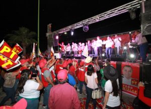 Por su parte, el candidato del PT, invitó a los ciudadanos a perder el miedo y a vencer con su voto a los políticos corruptos que han acaparado las tierras, el agua y la vida pública del estado.