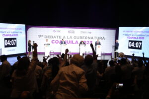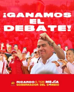 Torreón, Coah.- De manera clara y contundente el candidato por el PT y la Cuarta Transformación al gobierno del estado Ricardo Mejía Berdeja, defendió su punto de vista respecto a la corrupción que algunos quieren que quede en el olvido y presentó sus propuestas para lograr la grandeza de Coahuila, resultó ganador del Primer Debate a la gubernatura de Coahuila 2023, lo cual fue festejado por simpatizantes y militantes en Torreón, así como en diferentes lugares de Coahuila.