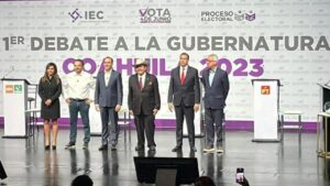 En el debate moderado por Javier Solorzano y Sandra Romandía en el Teatro Nazas de Torreón y organizado por el Instituto Electoral de Coahuila el cual inició a las 6 de la tarde del domingo.