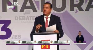 En su turno el candidato por el PT Ricardo Mejía Berdeja, insistió que en el estado existe una “paz narca”, que tiene las pruebas de ello y llegando a la gubernatura habrá de desmontar, lo sostengo dijo, “El Jaguar”, Francisco Fernández y “El bóxer” han contribuido que el estado ocupe el tercer lugar en narcomenudeo, hay violencia policial, han cometido asesinatos como el de un joven de Saltillo a quien introdujeron un “cuter” por el recto y una mujer embarazada en Torreón, por esto la necesidad de una Secretaría de Seguridad que realmente combata la violencia y el narcomenudeo así como una policía de género.
