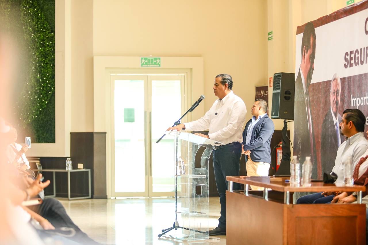 Acompañado del Dip. Shamir Fernández, Mejía Berdeja compartió algunos de los resultados y retos de la Estrategia Nacional de Seguridad Pública.