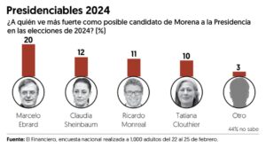 Por lo que se refiere a Morena, donde está claro que los contendientes con la aprobación del presidente Andrés Manuel López Obrador son: Claudia Sheinbaum y Marcelo Ebrard, mientras que Ricardo Monreal sigue con su estrategia de posicionamiento a pesar de no contar con el apoyo presidencial.