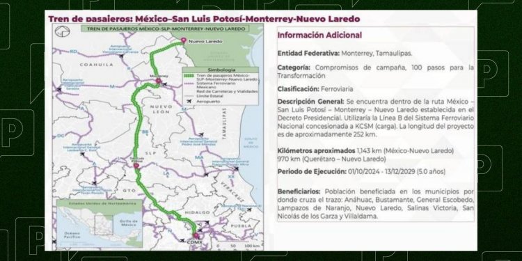 Se tiene previsto que las obras para la construcción del tren que conectará la Ciudad de México con Nuevo Laredo, comiencen este lunes, 7 de Octubre de 2024.
