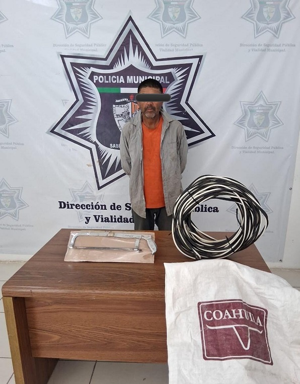 La policía aseguró en el lugar, una segueta de corte, un costal donde resguardaba el material hurtado, el cual al igual que el hombre arrestado quedaron a disposición de las autoridades de la Fiscalía General del Estado en la Región Carbonífera, para que resuelva su situación legal.