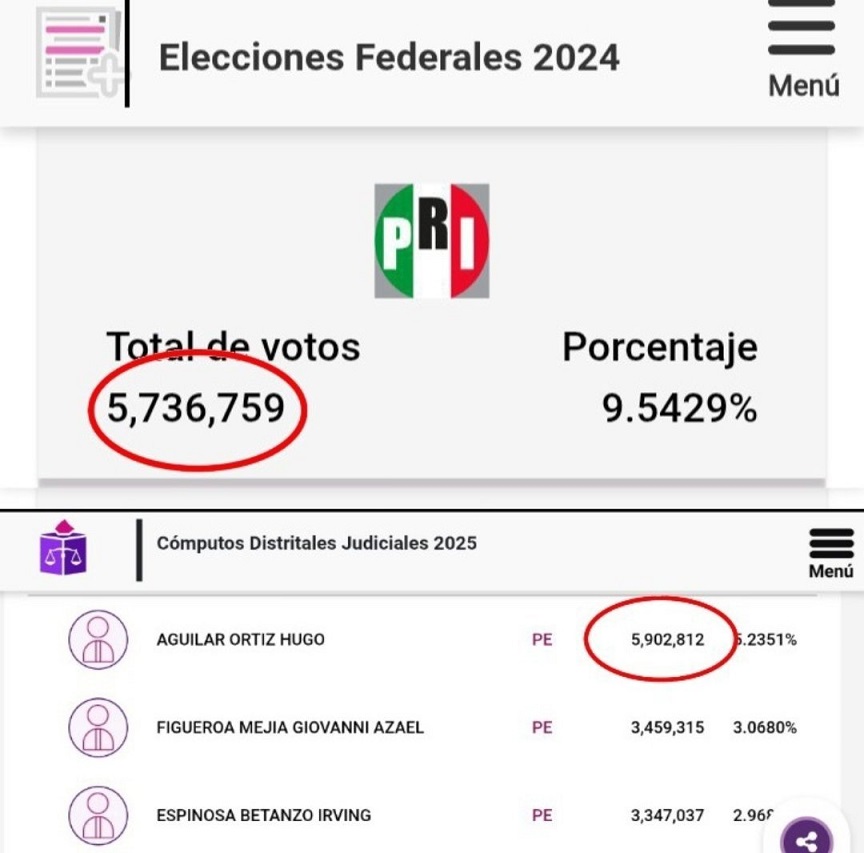 Por ello destacó la cantidad de votos logrados por el abogado mixteco Aguilar Ortiz, quien será el próximo presidente de la Corte al sumar más de 6 Millones 78 Mil Votos. Y en ese sentido, aprovechó para evidenciar que solo Aguilar Ortiz, logró más votos que el PRI en 2024.