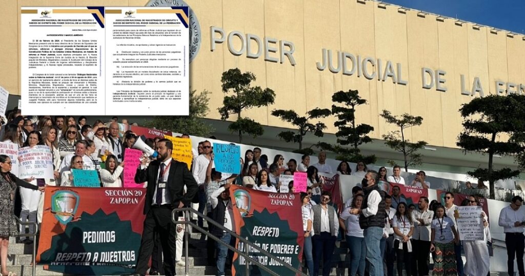 En medio de una protesta a las afueras de la sede del Sindicato de Trabajadores del Poder Judicial de la Federación (STPJF), los agremiados reclamaron que el dirigente sindical se ha sentado en mesas de trabajo con legisladores para acordar los pormenores de la nueva legislación judicial.