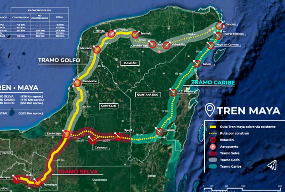 El Tren Maya opera en Chiapas, Tabasco, Campeche, Yucatán y Quintana Roo, con 34 estaciones y conexión a 6 aeropuertos internacionales.