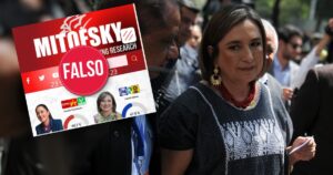 El primer caso fue de una imagen falsa que comenzó a difundirse en redes sociales, la cual se atribuía a la encuestadora Mitofsky. En esta “encuesta”, Xóchitl Gálvez se encontraba apenas a 0.8% de Claudia Sheinbaum en las preferencias.